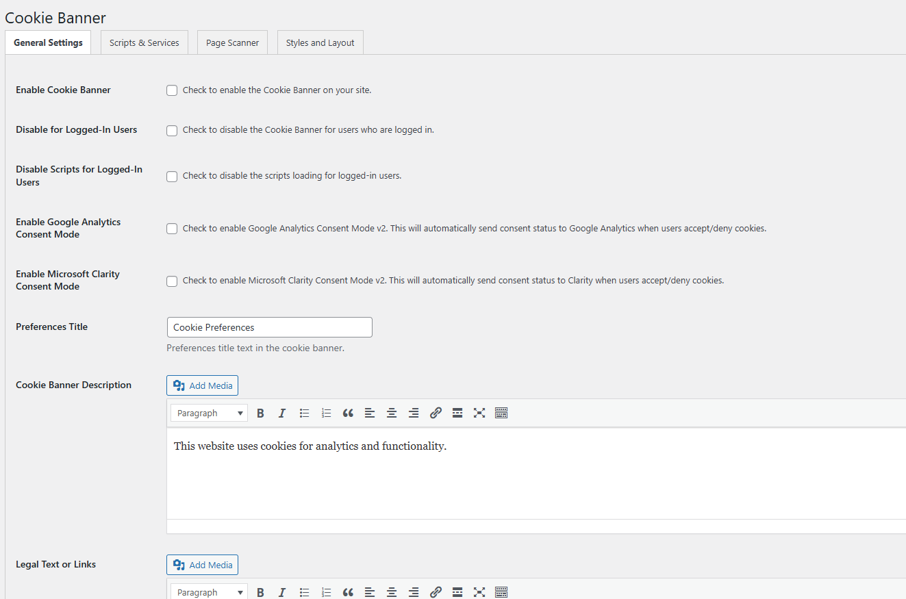far as I know legally as long as we block the analytics scripts before the user accepts the banner this will cover the 99.99% of the websites. there are some edge cases like if your site makes money from advertisement/adsense and similar system or if you have lets say airbnb like website and you collect users/peoples data and earn money β¦etc you need advance cookie banner and compliance but like I said this is literaly the 0.001% of the sites. I dont care about those sites and will ignore it completely.