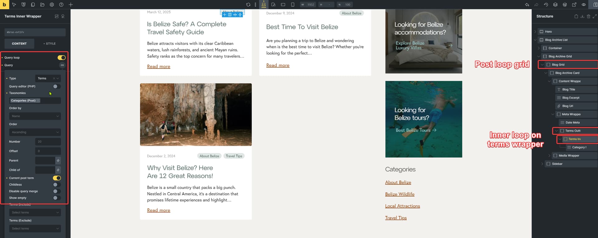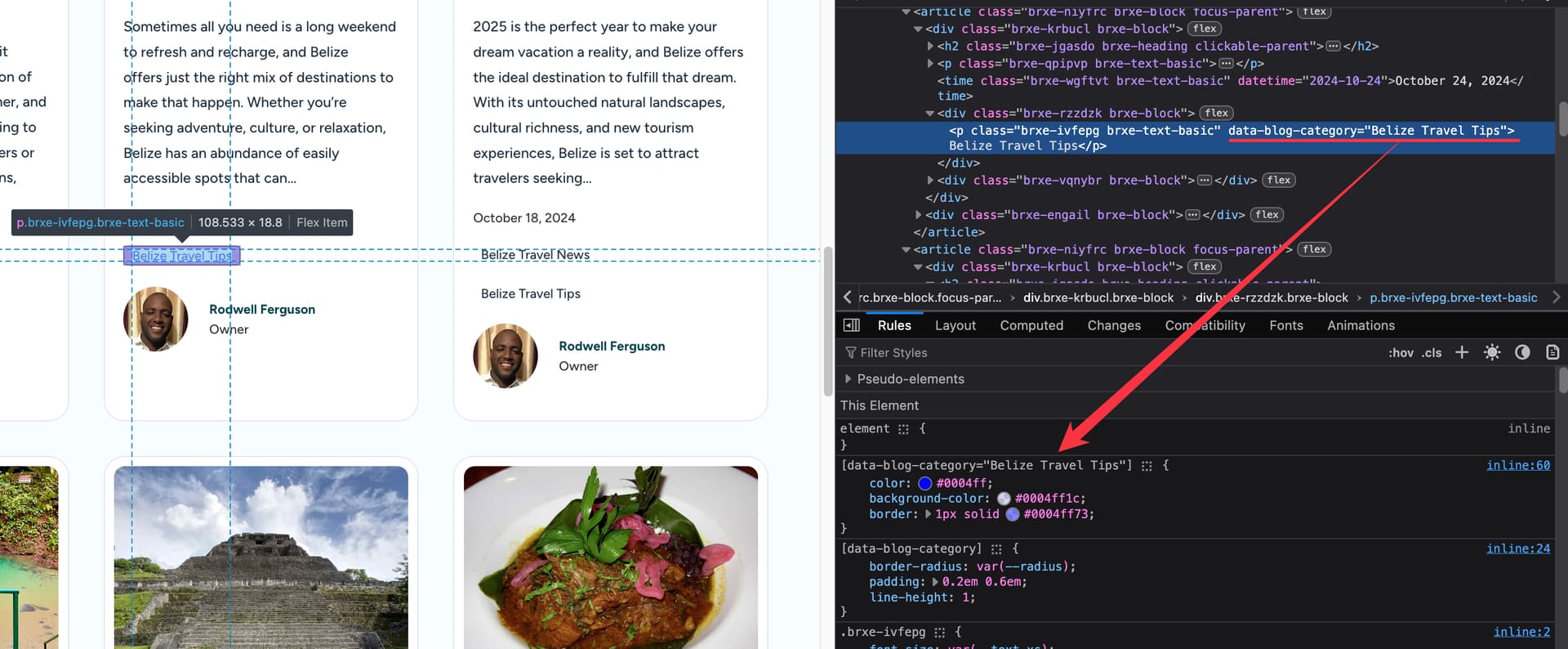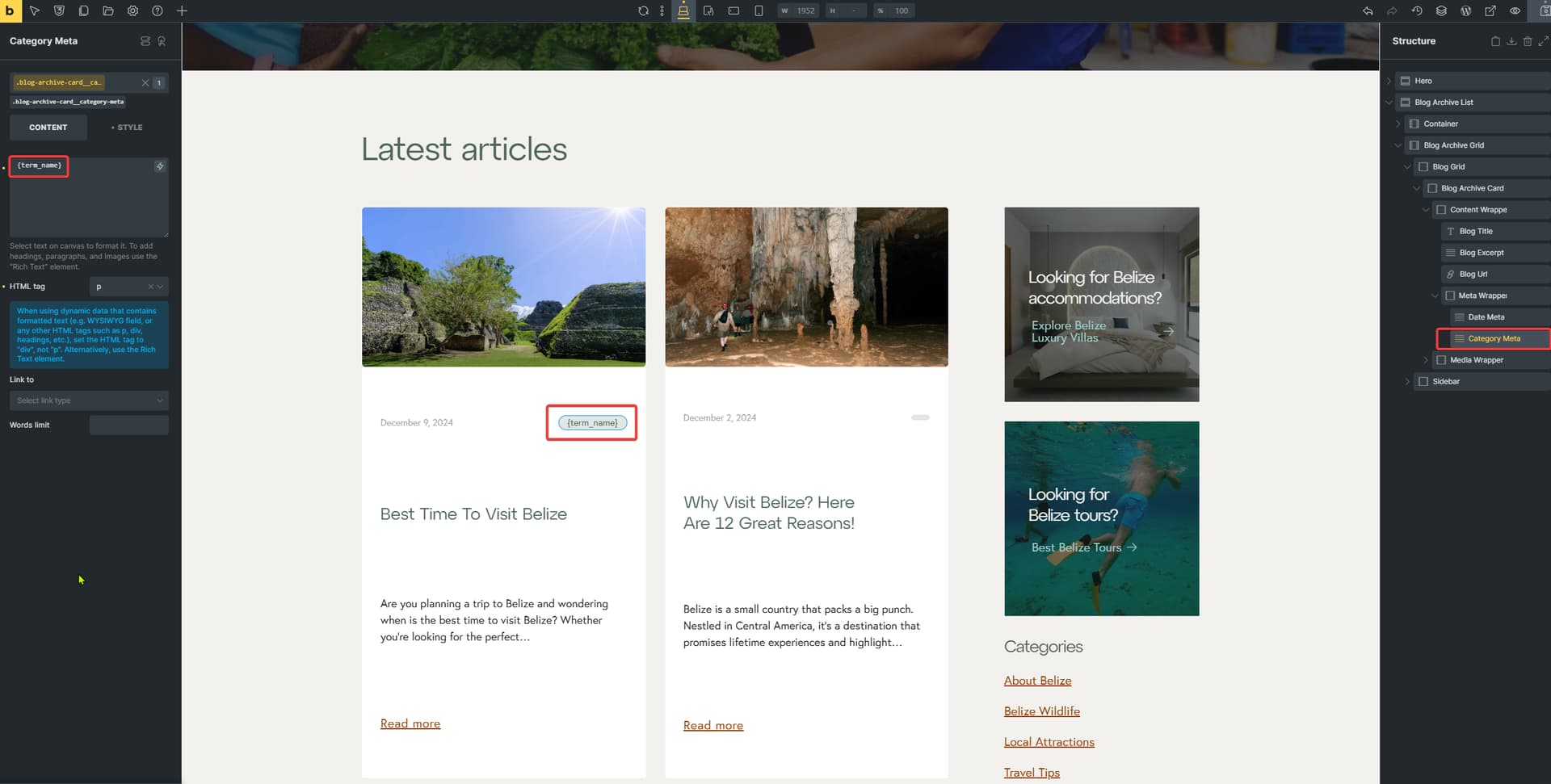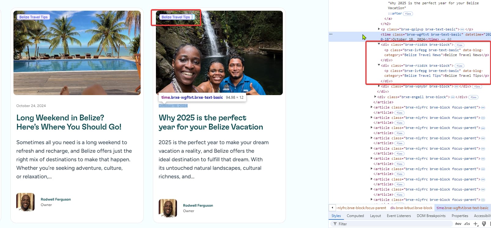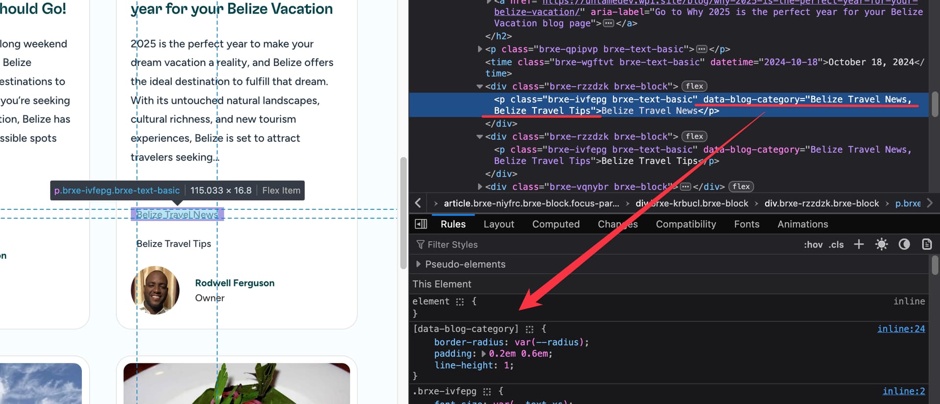 Ideally, what I would have wanted was the terms showing up in a div that I can use flex on, so show the badges side by side and still be able to position the div where the badges are now. However, each term_name outputs inside a div and so when I am using absolute positioning I am now getting the issue where they stack over each other.