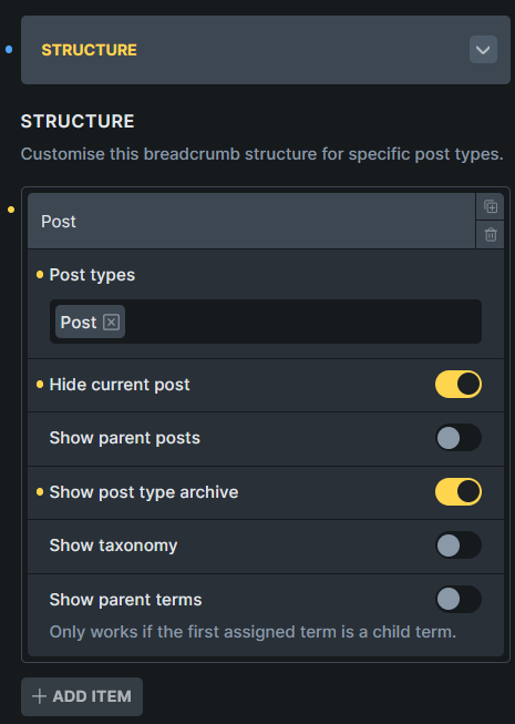 I would appreciate the option to customize the archive name in the Breadcrumbs element when the “Show post type archive” option is enabled. Currently, it displays ‘Posts’ for the default type, and I would like it to display “Blog.”