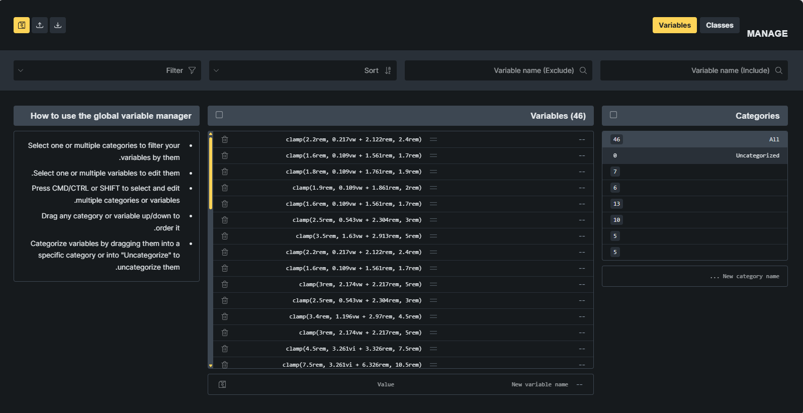 Variables names and custom categories names are invisible. When trying to create a new category, the name is also invisible.