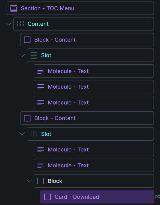 Styles of the “Card - Download” are not loading in frontend. Workaround is to put another “Card - Download” component on the page that is not inside a slot and put a “display:none” on it.