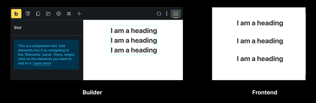 I have a Component with a slot. The block in which the slot sits has a row gap of 100px. When using the component instance with several objects in the slot, the gaps are ignored in the builder. This is because the slot has a separate div element. On the rendered frontend, it looks all fine since the slot has no separate div element and the gap settings for the parent block take effect.