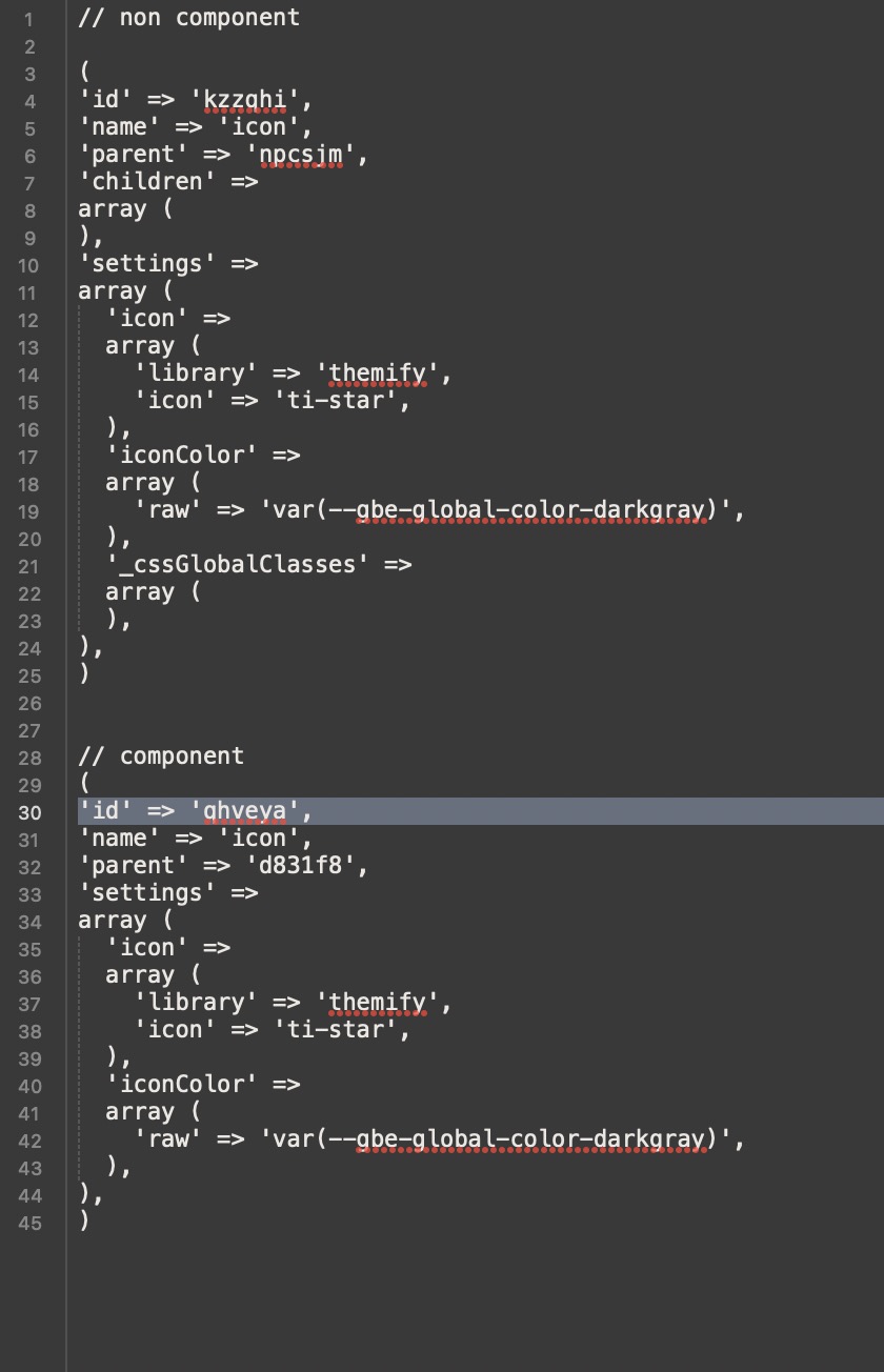 ThenI dug the serialized values for the component from wp_options and the very same un-component-ified item from the wp_posts post_content