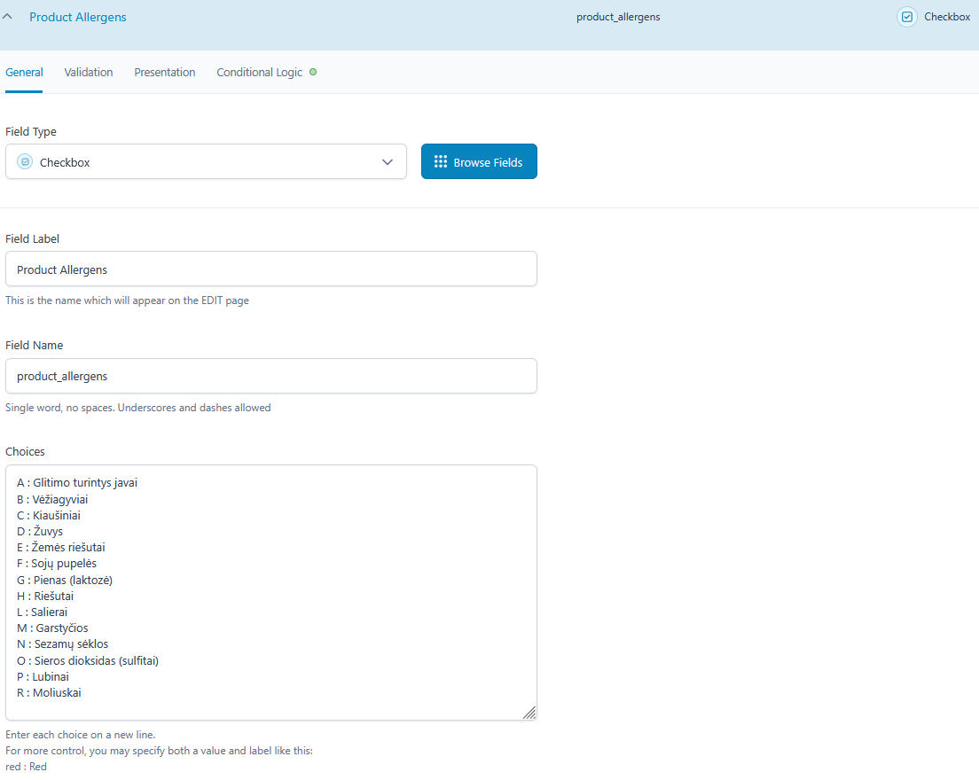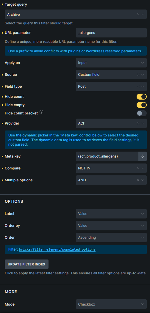 Basically I have a ACF checkbox for allergens in my Woocommerce products:
