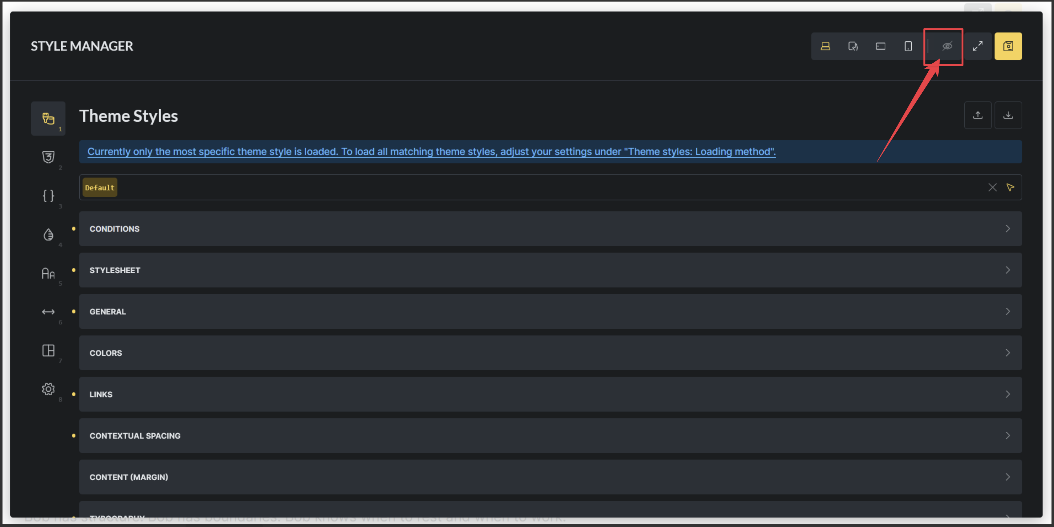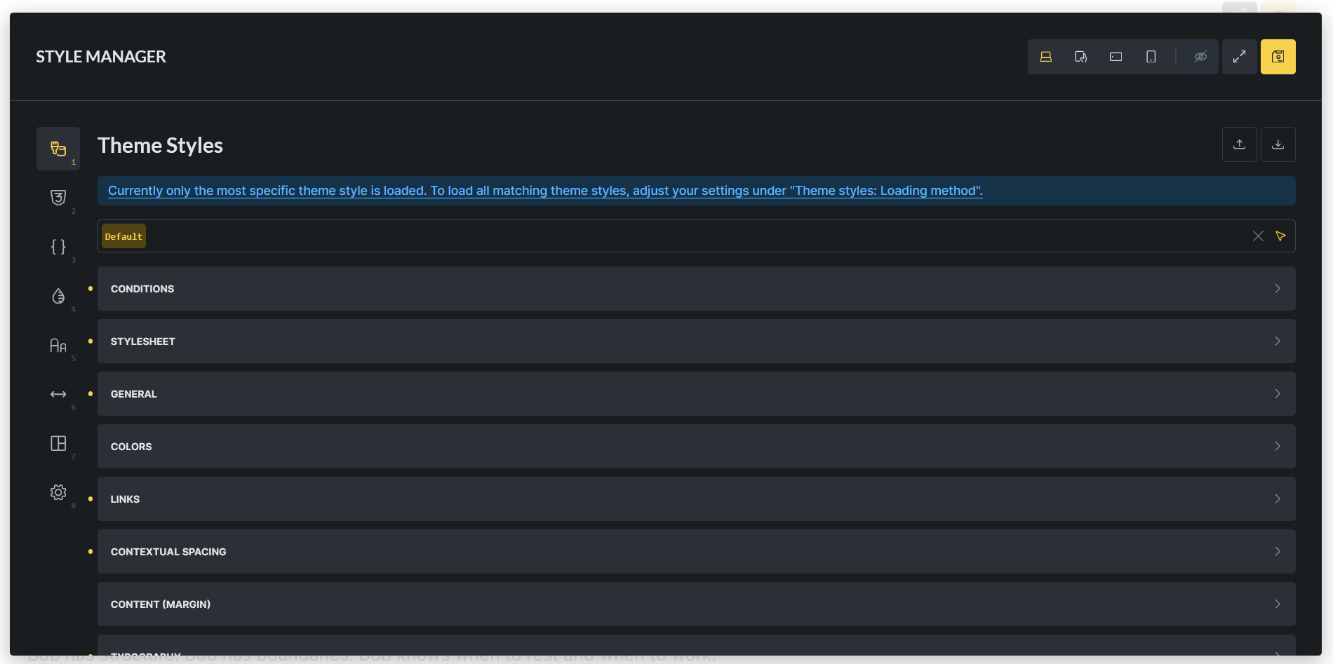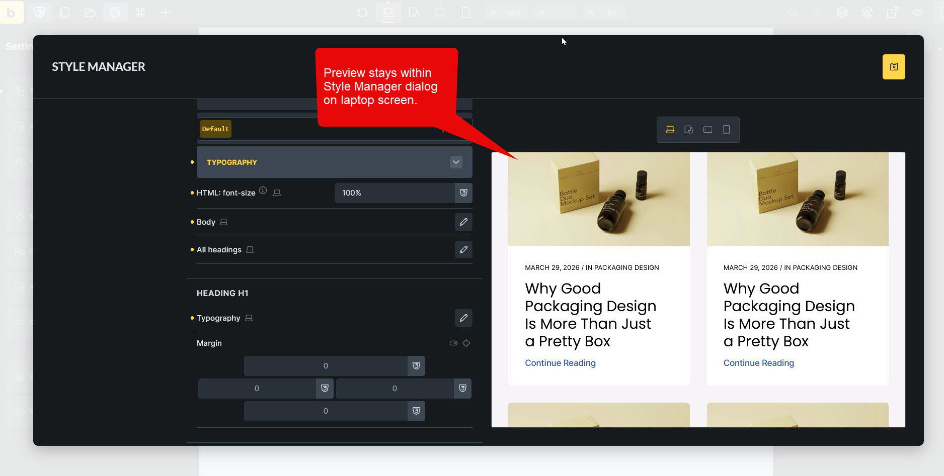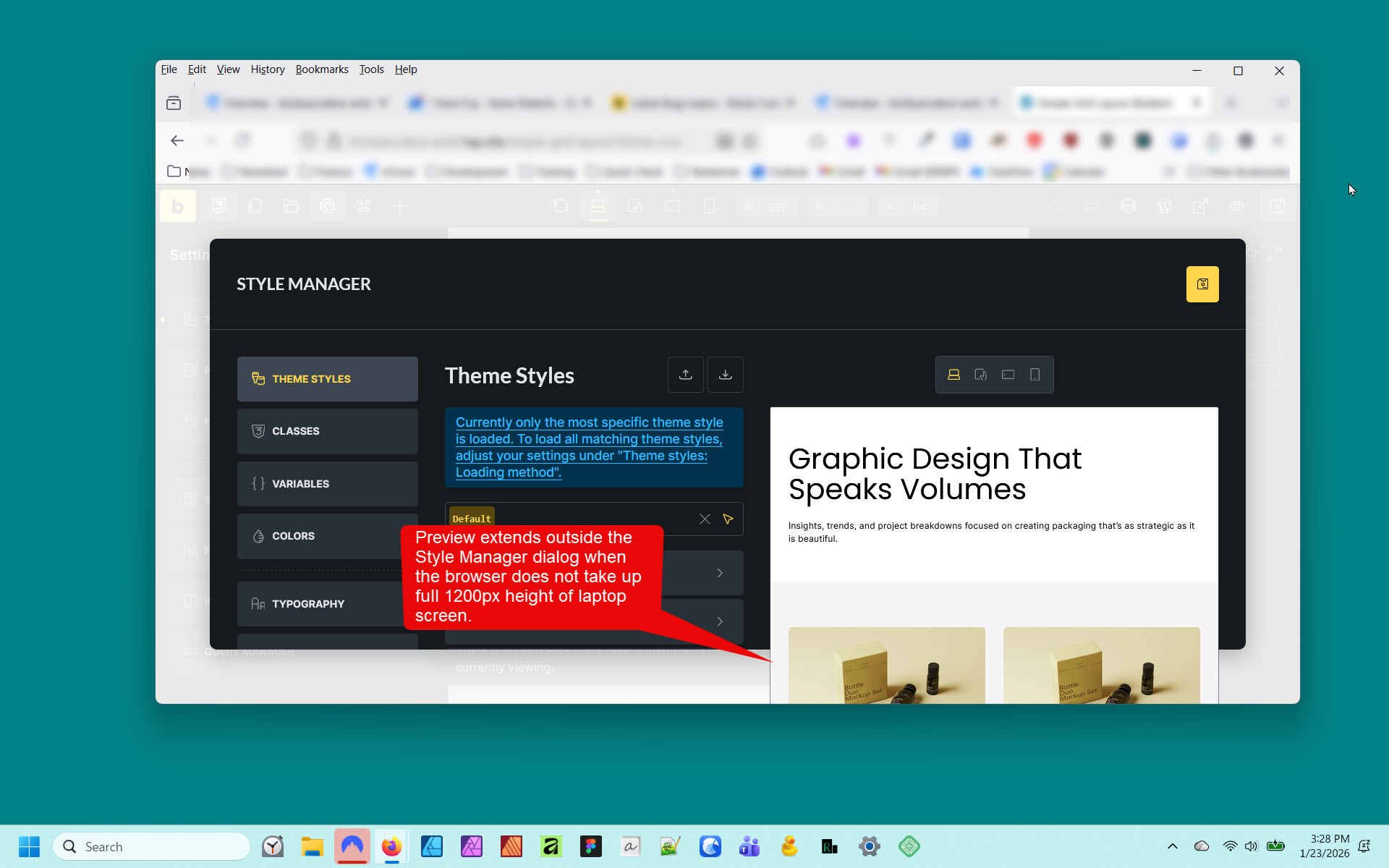 When I have Bricks displayed on my laptop screen, the Style Manager dialog completely encloses the page preview.