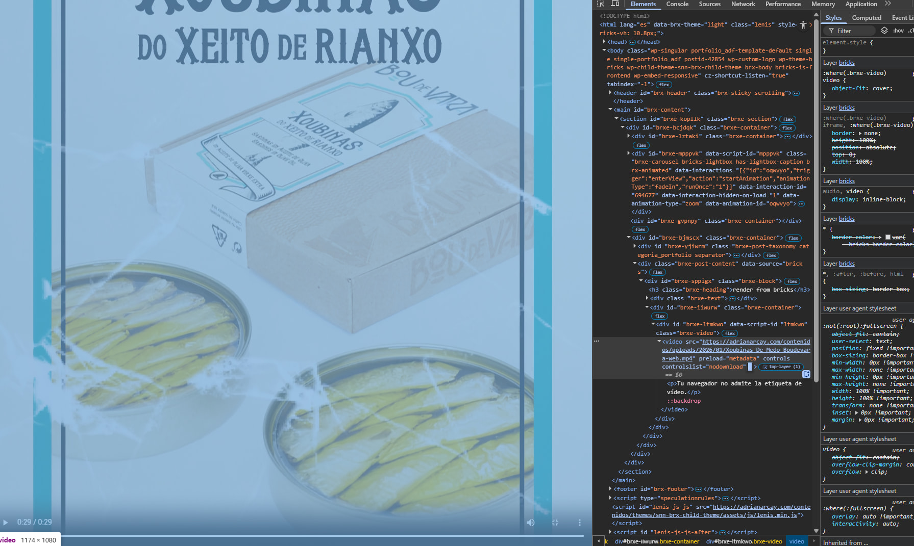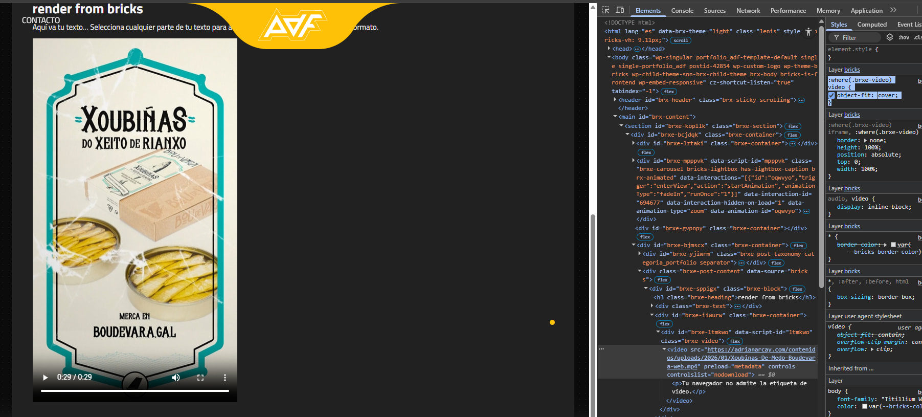 When using the Video element in Bricks, the video is cropped in fullscreen mode because Bricks applies object-fit: cover by default.