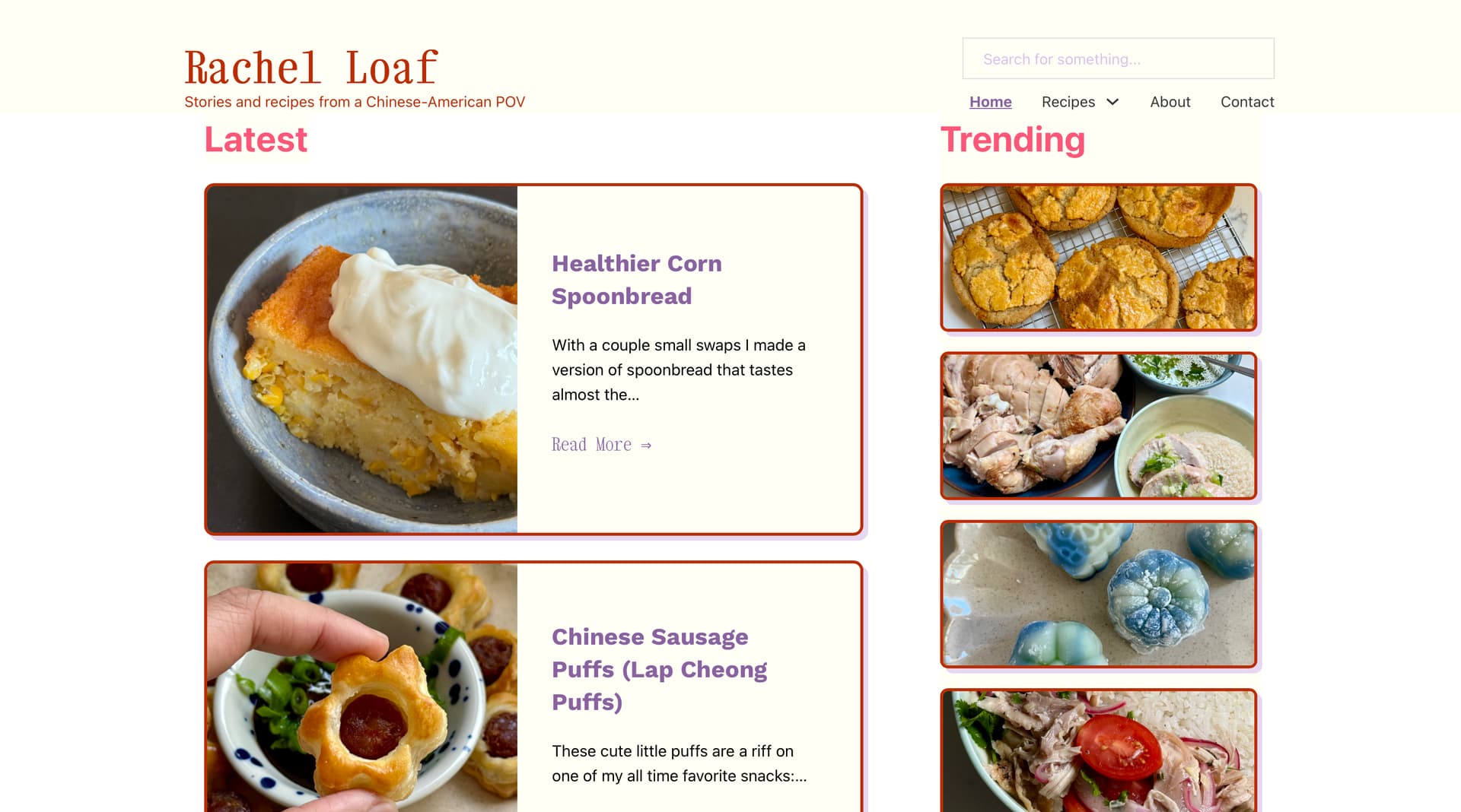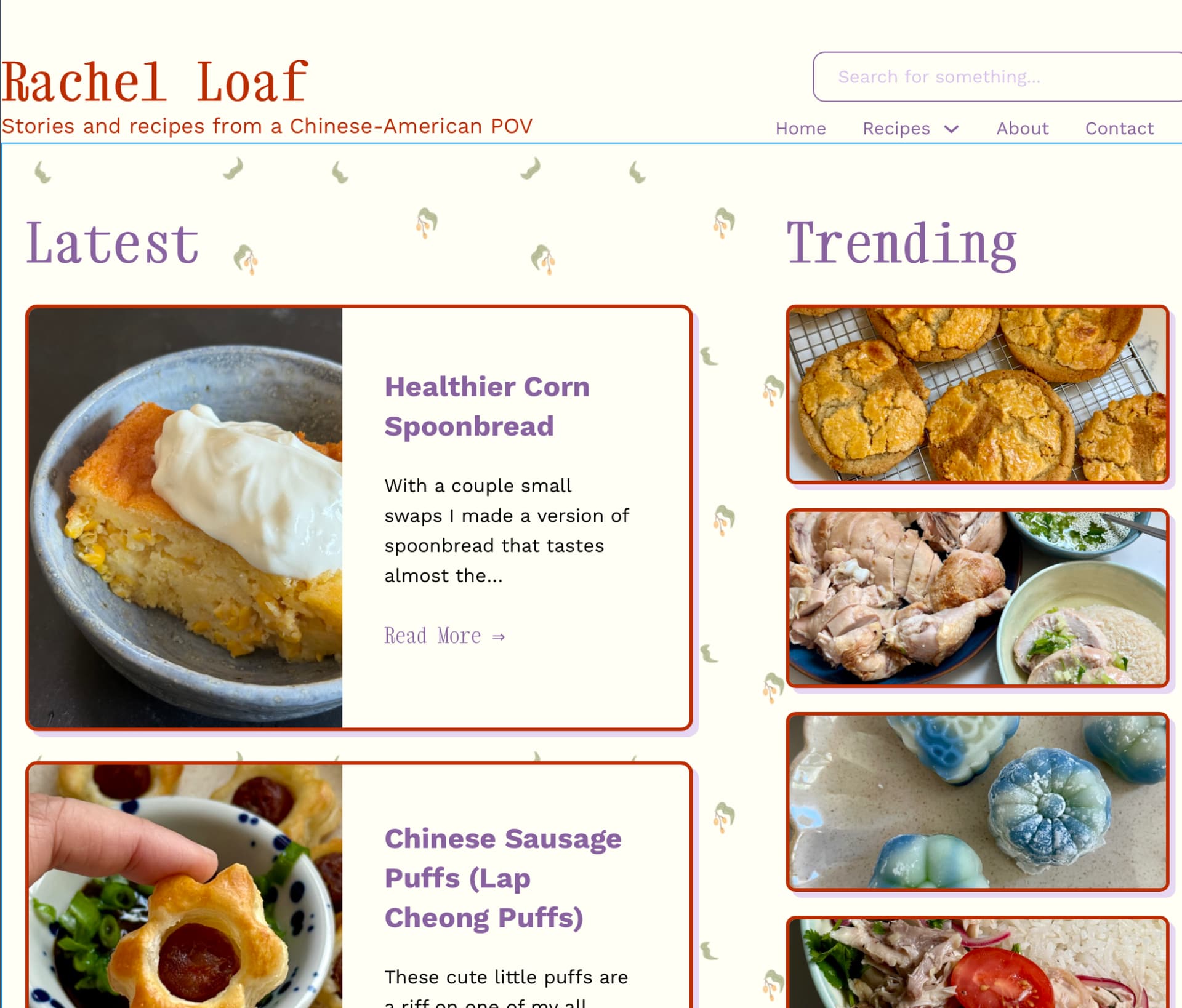 (The screenshot with the plain grey background and the hot pink headers is how the website — rachelloaf.com — is showing up in my browser vs. how it should look in the other screenshot with the tiled image background)