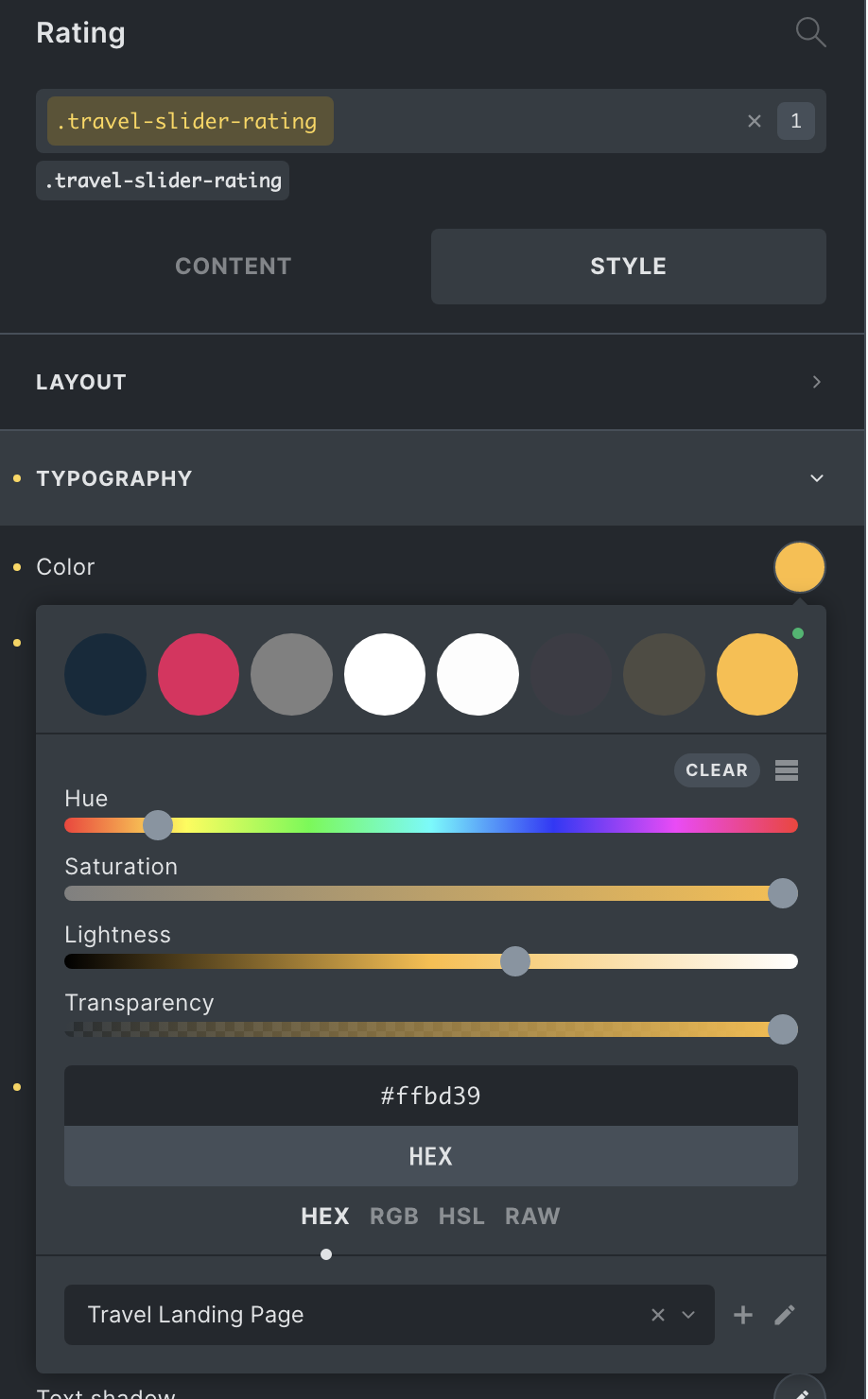 As you can see it’s correctly assigned to a class and there are 8 colors in it. Here is the imported palette: