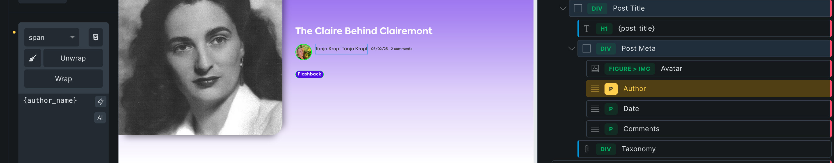 My name is showing up twice in my blog post meta section. Not sure why. I have this same setup in cards on my home page, and it’s just fine. But for some reason, on blog posts, it’s duplicating.