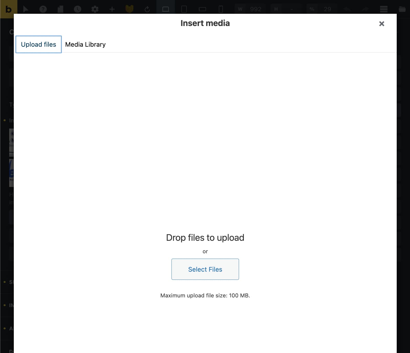 I have another website with the same setup and everything works perfect. I can load media and all elements works 100%.