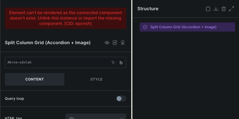 Mabye it didn’t work because the component was already missing but it showed it was present in the other component. It was a text link using some dynamic data to show Rank Math primary category inside another component that looped 5 posts to show latest articles.