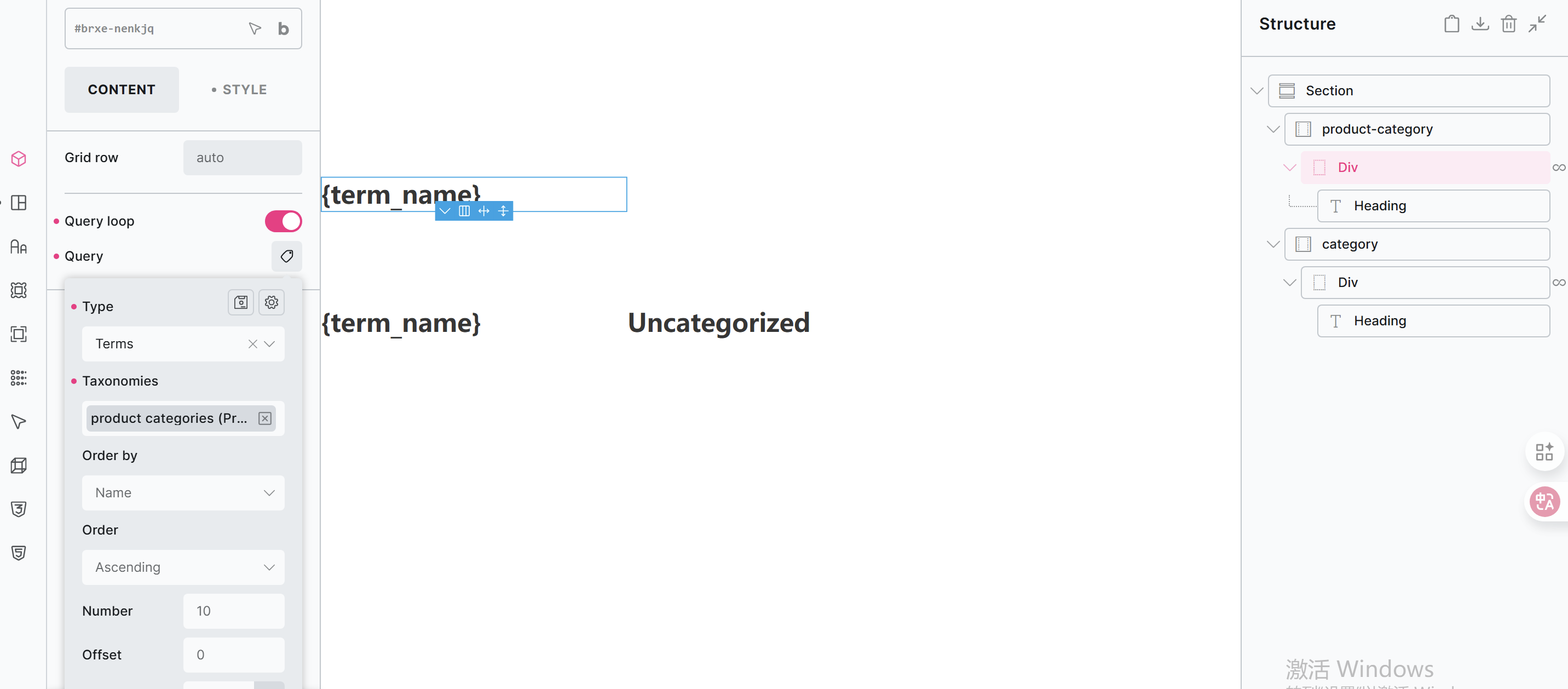 I’m using Bricks Builder with ACF to create a custom taxonomy called product-category, and I want to display all the terms from this taxonomy on my page.