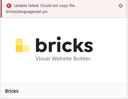 However, when I try to update Bricks. I get this. “Update failed: Could not copy file. bricks/languages/tr_TR.po”
