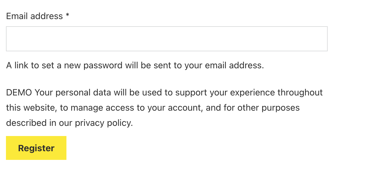 I use the “Account - Register form” in the template for “Account - Login” for the user registration but for some reason the privacy disclaimer is missing.