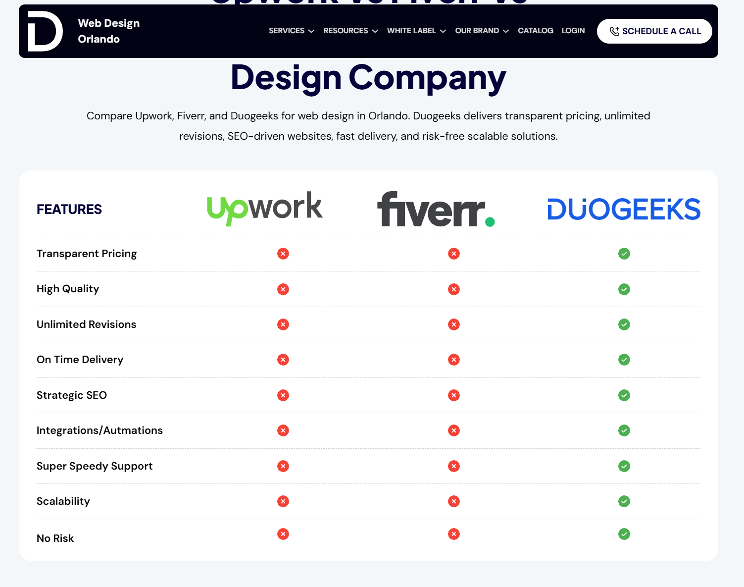 This is funny on their duogeeks website. They are comparing themselves to companies that don’t actually do web design and development. I have used people on Fiverr and Upwork for design and development and their claims are all false.