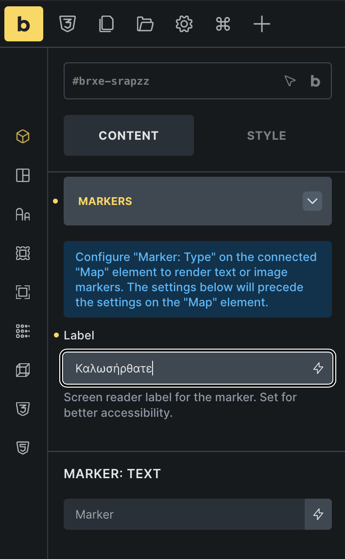I can confirm that when the Google Map marker is set to use an image, VoiceOver does not pronounce Greek labels correctly. Instead, it reads the label using English phonetics, spelling the characters rather than reading them as Greek words. This is something I’ve already verified in multiple tests and also discussed previously.