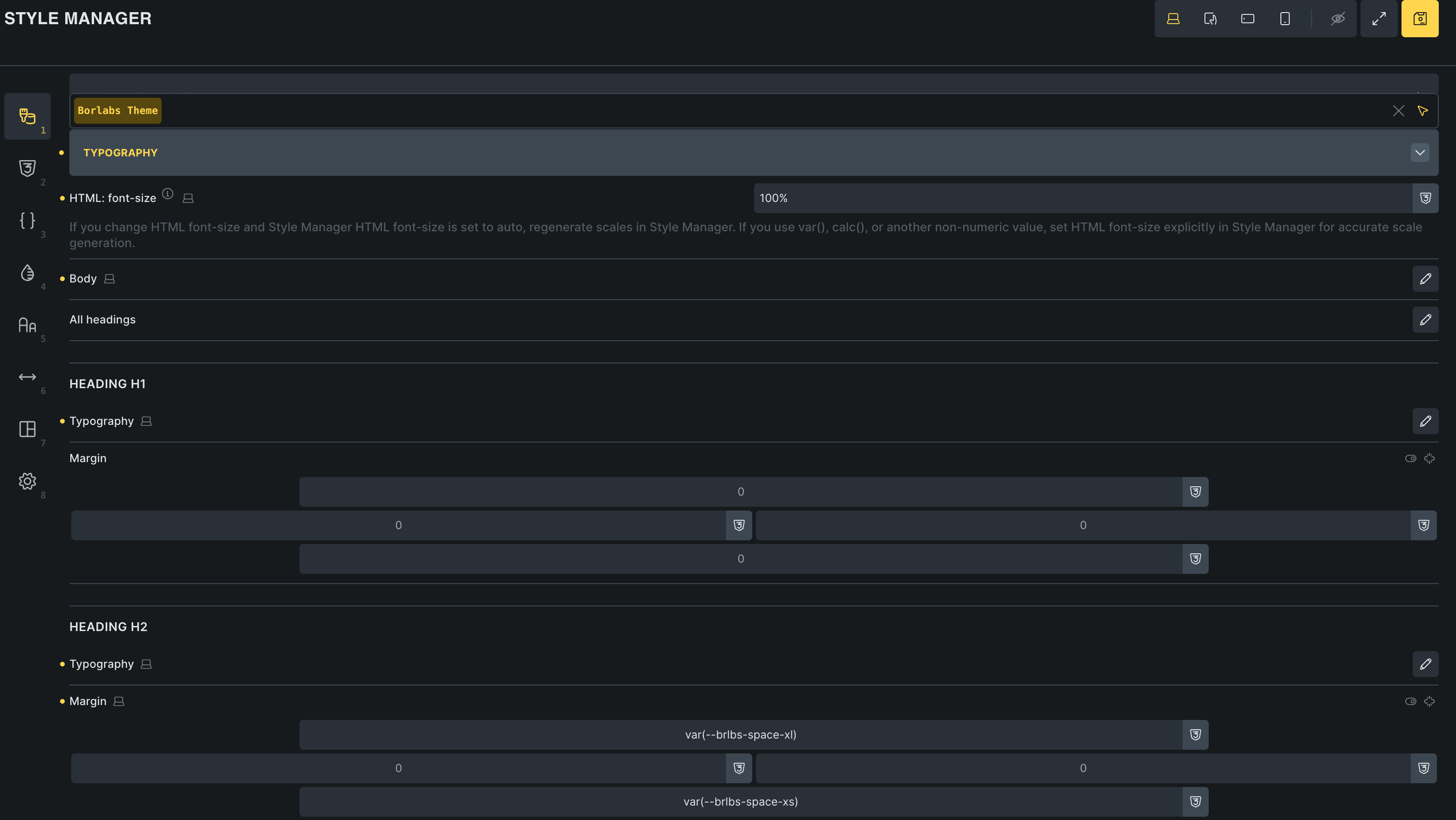 Element-specific settings should override global heading settings, allowing individual components to maintain their intended spacing.