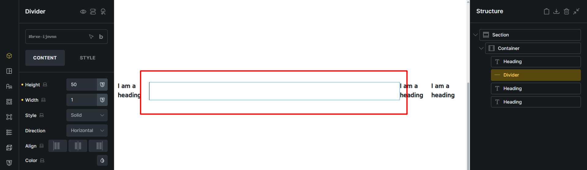 In a row container, I set the width of the divider to 1 but its width is still full and cannot be controlled. Shouldn’t the width be auto in this situation?