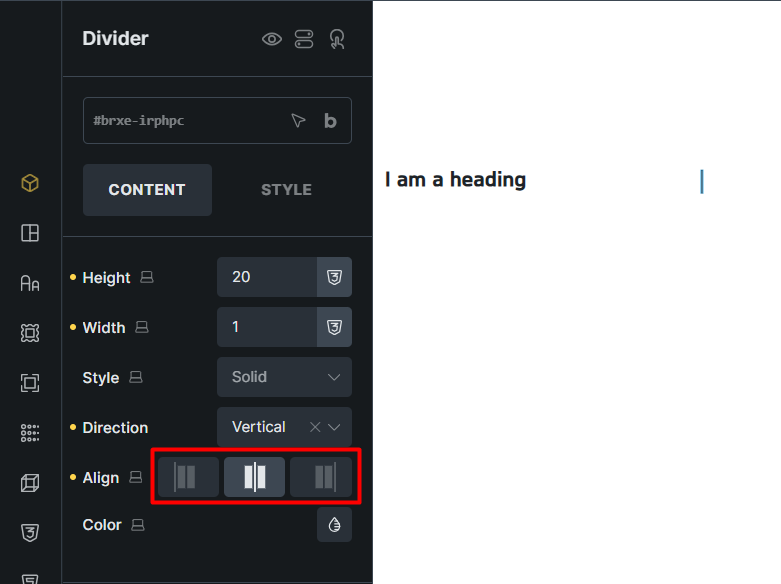 It seems like you want to create a vertical divider. The best way is to change the “direction” control to “vertical” and it should work.