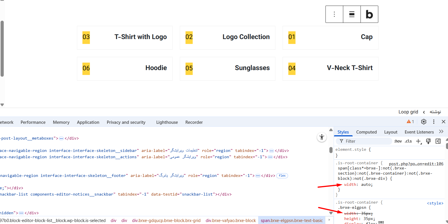 If the explanation is not enough, please view the following component as a block in Gutenberg. Loop index counter width not working as expected.