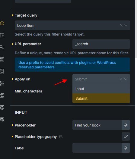 Which means, if the Filter - Search element “Apply on” = “Submit”: