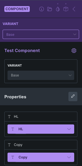 When using variants in components and placing a nested component in the parent component, the variant drop down is shown twice. Changing the variants here (in both dropdowns) does not affect the instances of the nested component (which is fine I guess since the properties are treated like content, not styling).