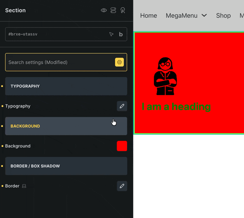 3- If I’m not mistaken, this problem was fixed in version 2.0, but it still happens now. If you make changes in the Typography or Border group, the controls that are not active will also be displayed in Modified settings.