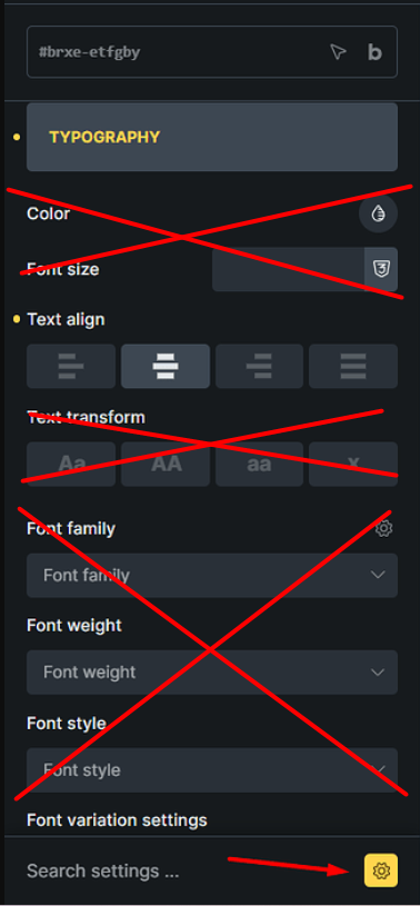 2- If you make a change in the Typography group, the typography controls will be displayed as a pop-up in Modified settings. While they are not in a pop-up in normal mode.