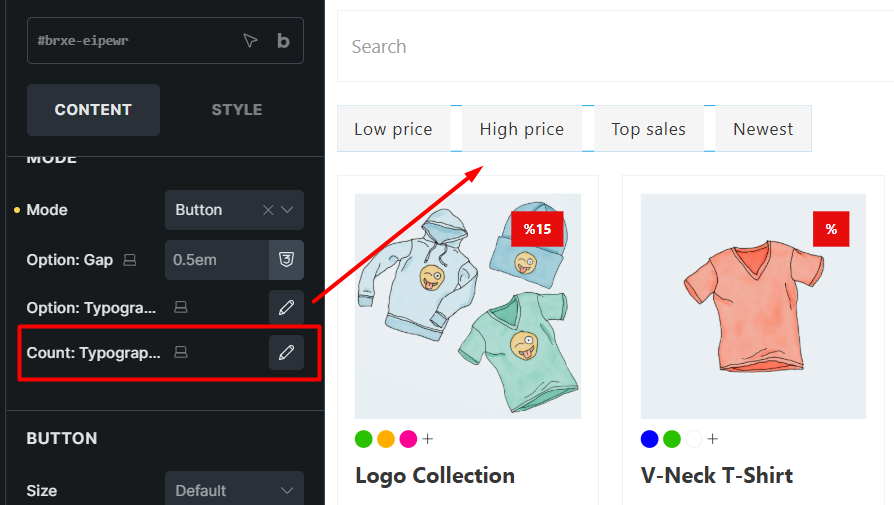 3- In a checkbox or radio filter with a sort action, there will naturally be no count. But there is a count: Typography control in the settings.