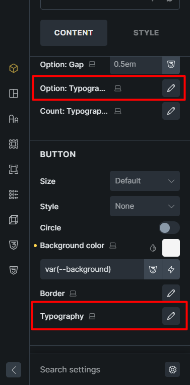2- If we set the filter mode to a button, there will be two similar controls for the button typography.