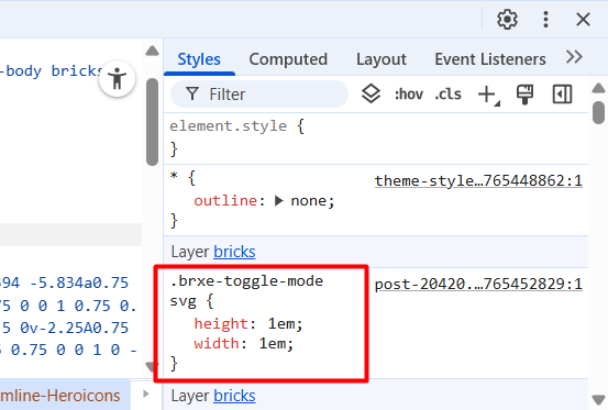 This may not be a bug, but when we select an svg icon in the Toggle - Mode element, it overrides the default SVG icon size. Compared to other elements like Rating, the default size of SVG icons in this element is different.