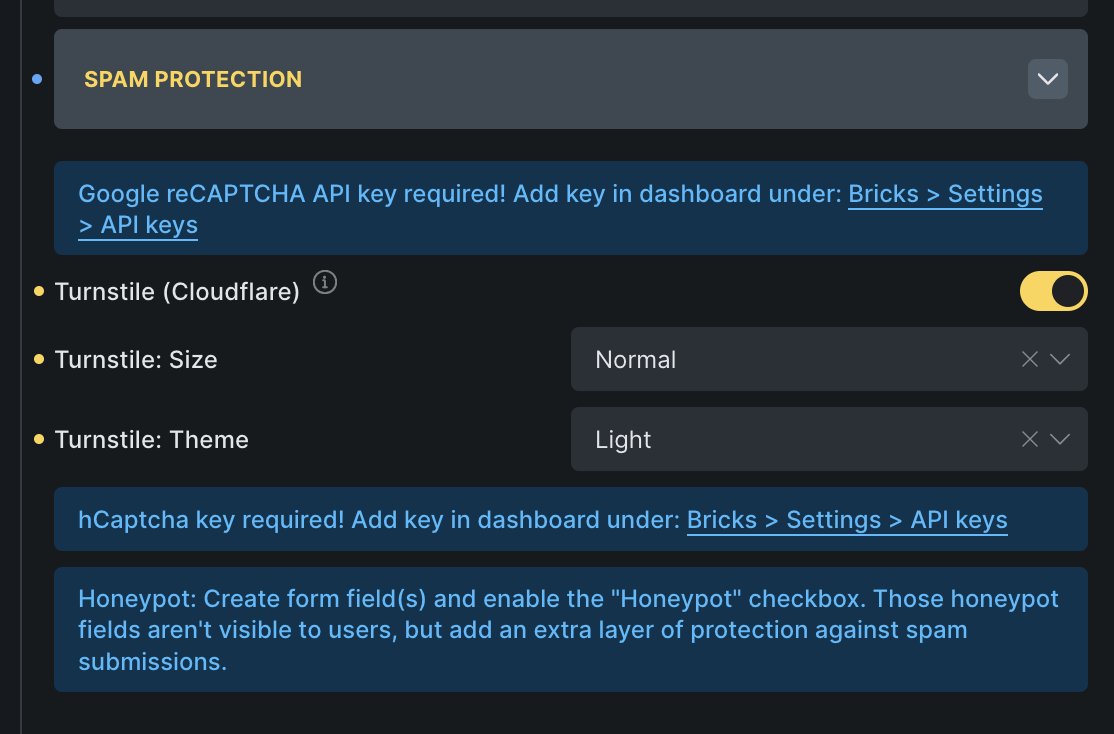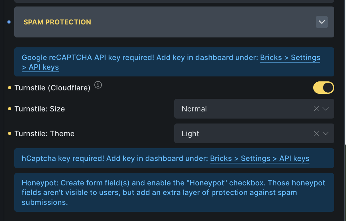 I have a registration and login form, both created natively in Bricks. Both forms utilise Cloudflare Turnstile.