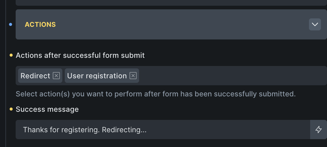 Registration form actions: