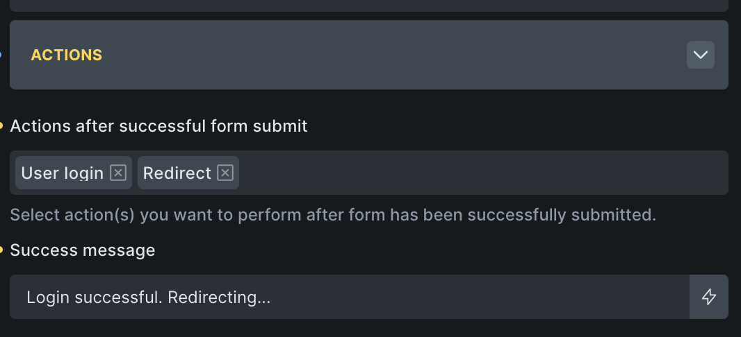 Login form actions:
