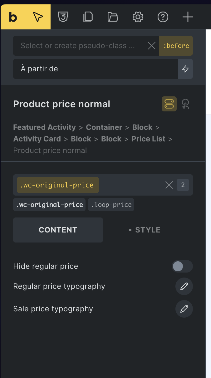 I noticed that it does not translate texts with :before & :after, they appear in the translation fields, but at the end it is not translated.