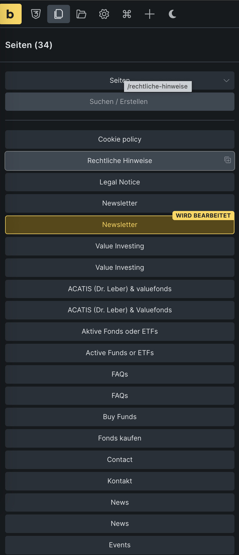 My question: is it possible (or could it be added) to show a small language indicator in the page list view — e.g., “(DE)” or “(EN)” next to the page title — so one can immediately recognize which language version is being edited?